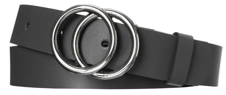 Ciekawy pasek damski wykonany z wysokiej klasy bydlęcej skóry naturalnej i solidnych metalowych elementów. Posiada srebrną metalową klamerkę składającą się z dwóch kółeczek. Połyskująca skóra o gładkiej fakturze. Możliwość samodzielnego skrócenia paska.