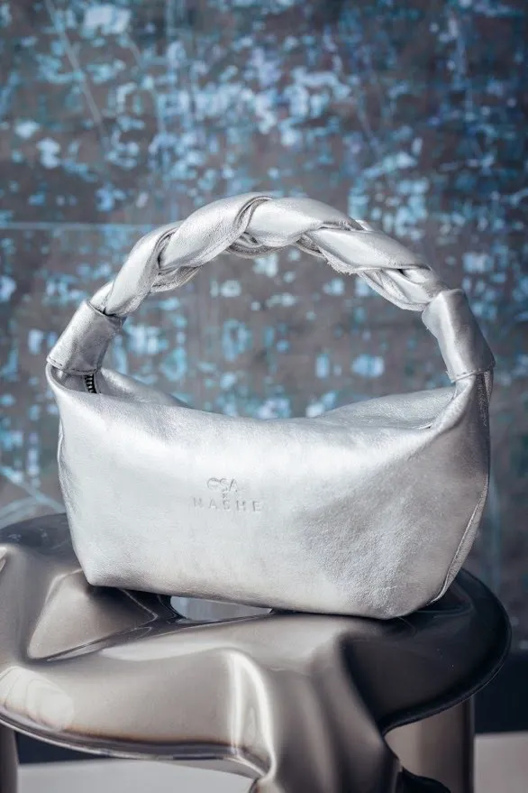 OSA x NASHE - mała skórzana torebka - srebro metalik