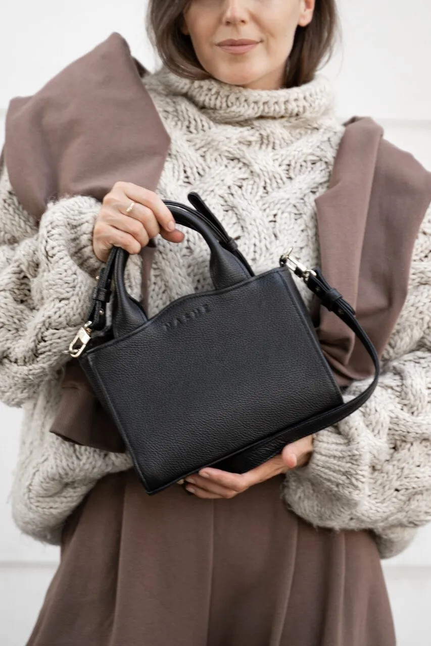 HARMONY BAG - skórzana torebka - czarna - Srebro