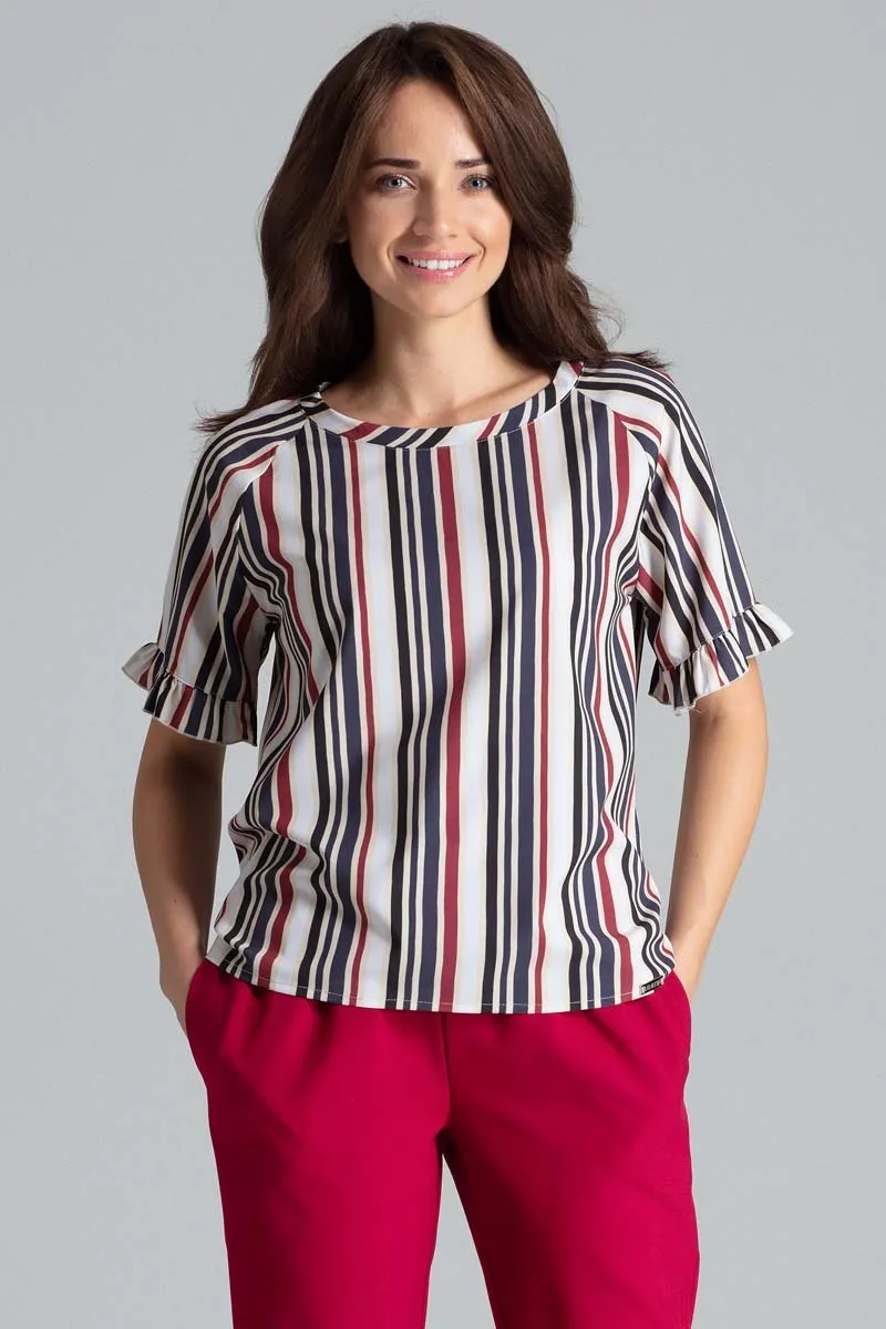 Bluzka z Kimonowym Rękawem z Falbanką Wzór 110