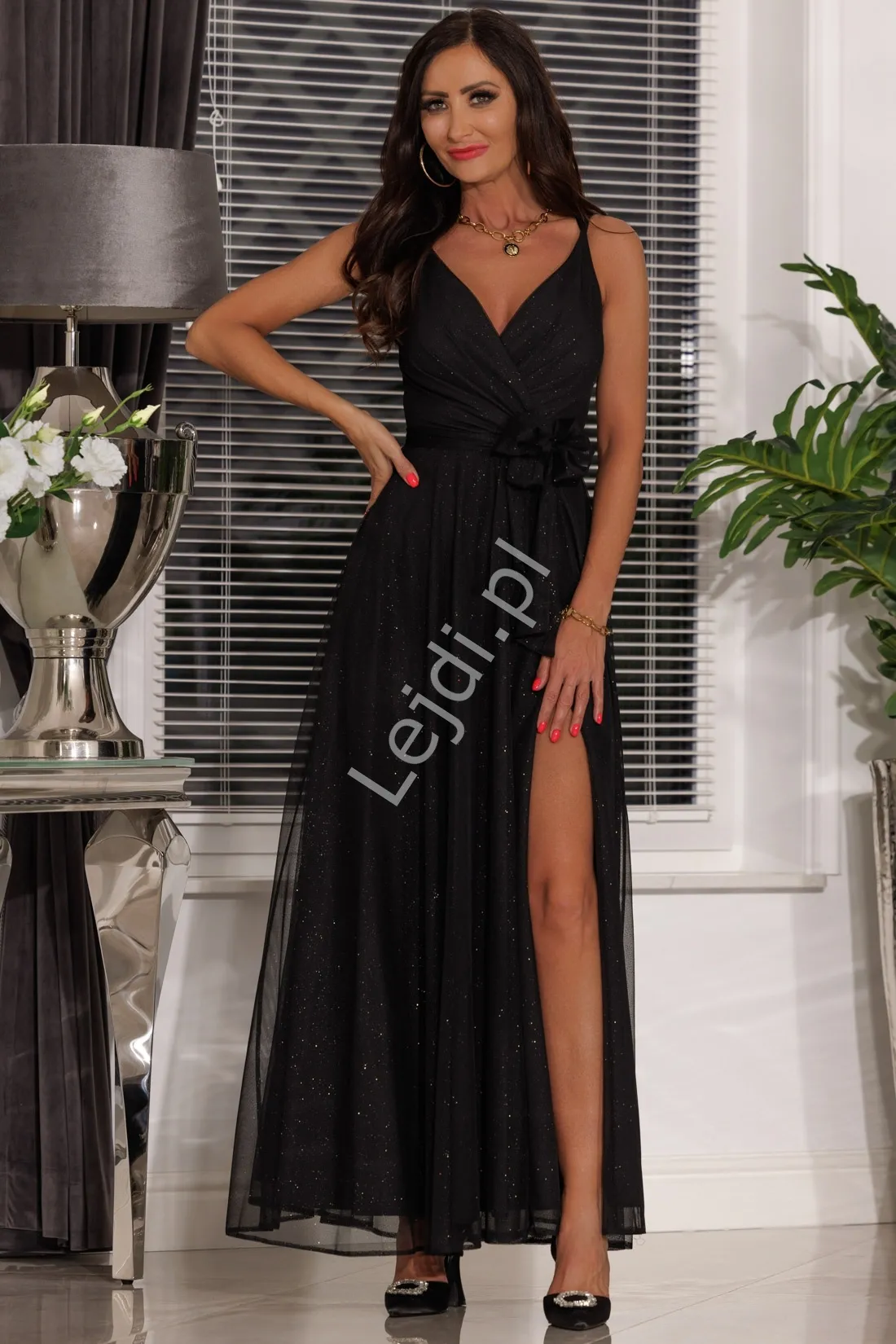 Długa czarna tiulowa sukienka Luna na sylwestra , studniówkę