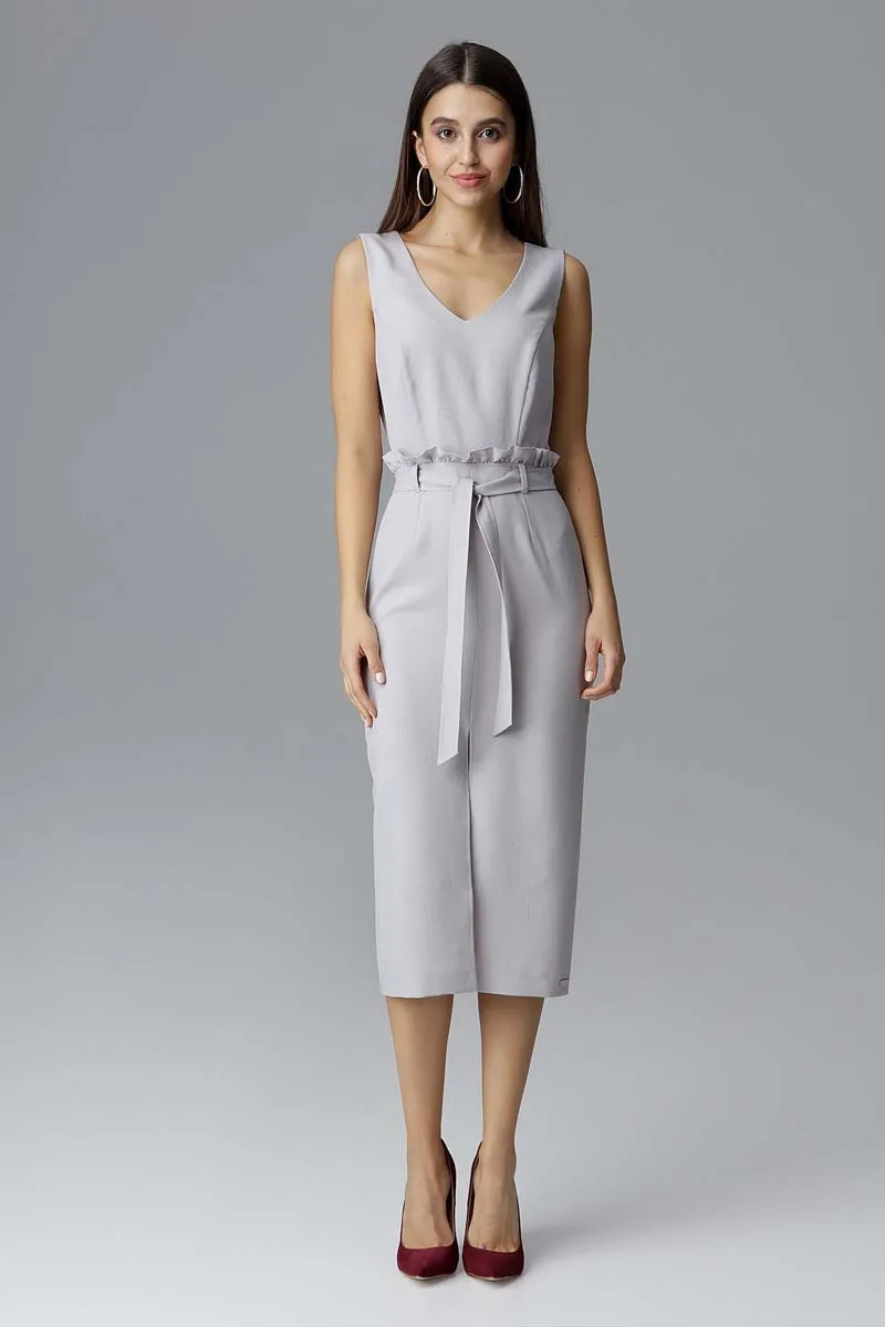 Szara Dopasowana Midi Sukienka Wizytowa za Kolano