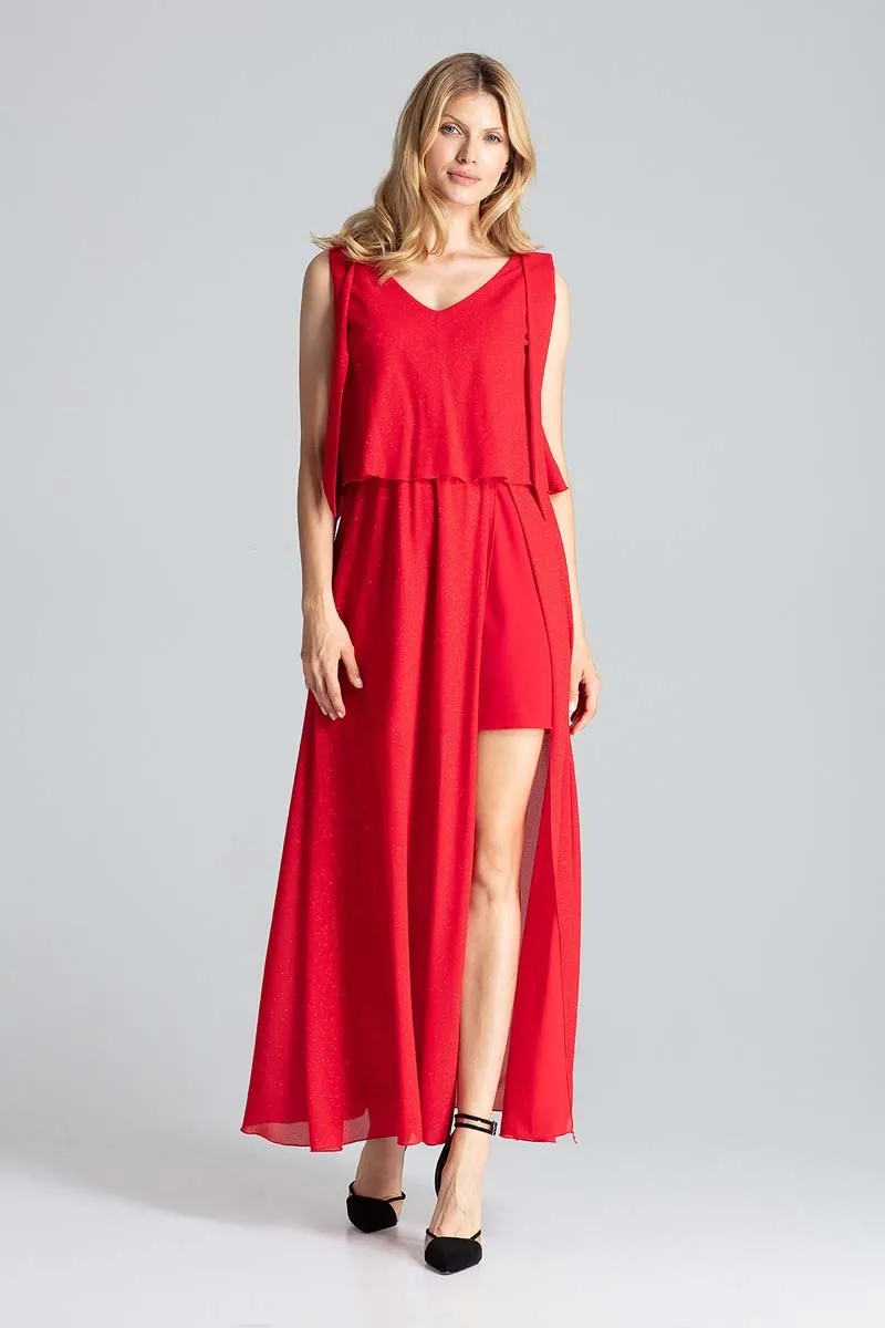 Czerwona Warstwowa Maxi Sukienka Wiązana na Ramionach