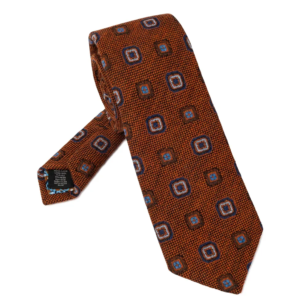 Krawat pomarańczowy w kwadraty VAN THORN (wełna, jedwab)
