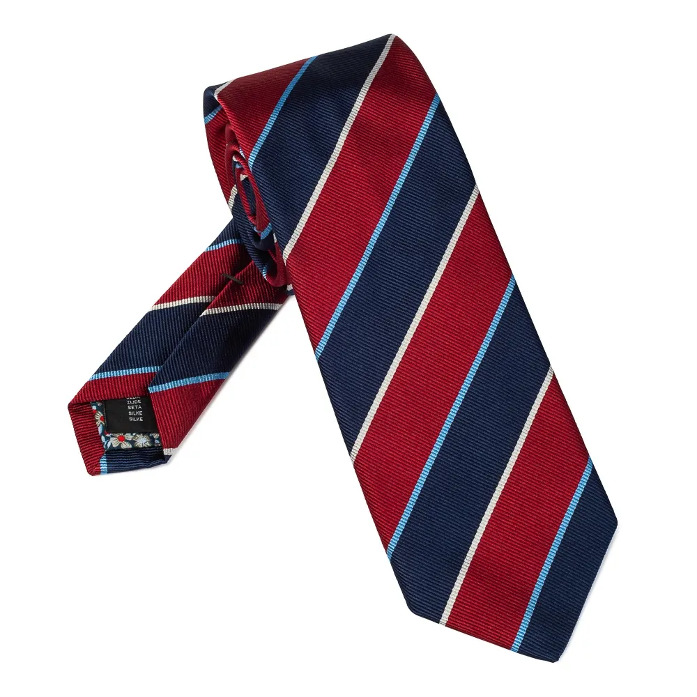 Krawat jedwabny w granatowe i czerwone pasy VAN THORN