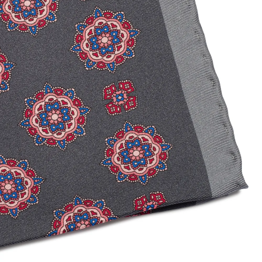 Elegancka granatowa poszetka jedwabna w białe kropki z czerwoną obwódką. Ta poszetka będzie pasowała idealnie do granatowej i szarej marynarki. Jest to poszetka niemieckiej marki Hemley i jest ręcznie szyta. Materiał: jedwab 100%