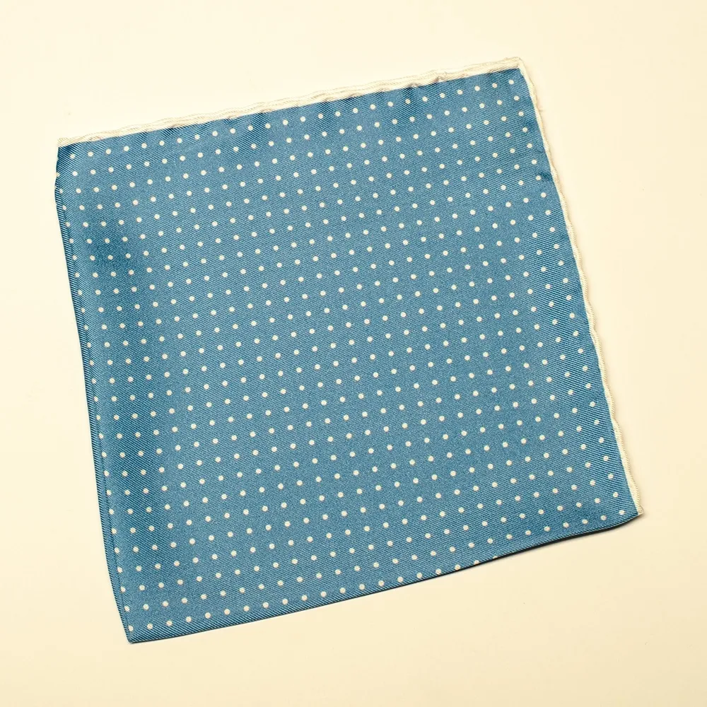 Niebieska poszetka w białe kropki z pomarańczową obwódką