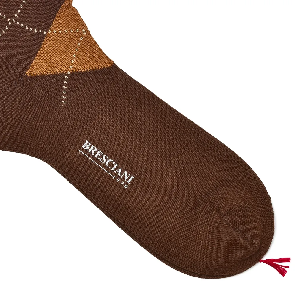 Brązowe skarpetki męskie z miękkiej bawełny w kwadraty M