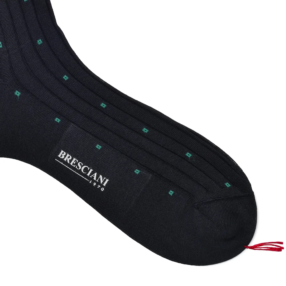 Bresciani granatowe bawełniane skarpetki męskie w zielone kwadraty L