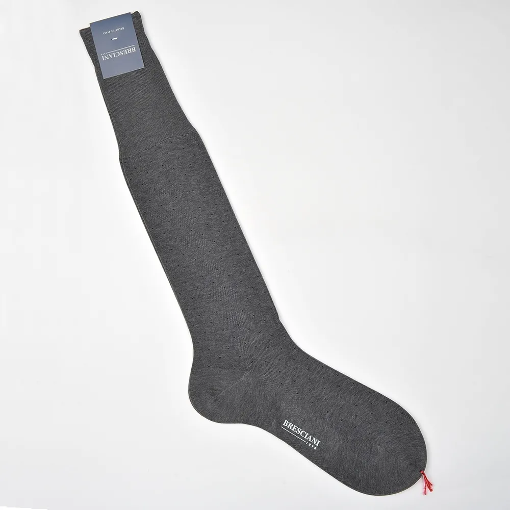 Skarpety podkolanówki męskie bawełniane szare Bresciani w czarne kropeczki L