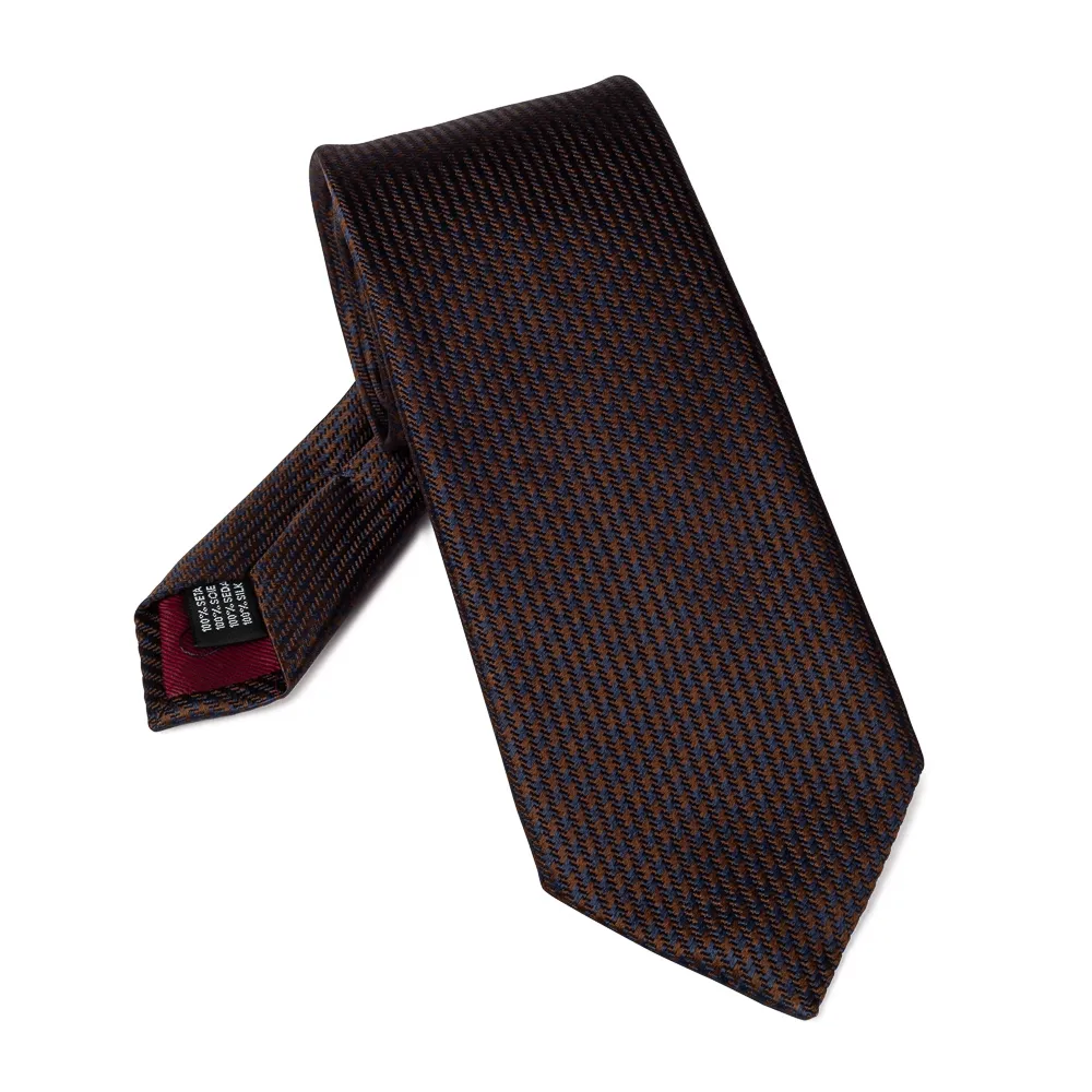 Krawat jedwabny pepitka brązowo granatowa - VAN THORN