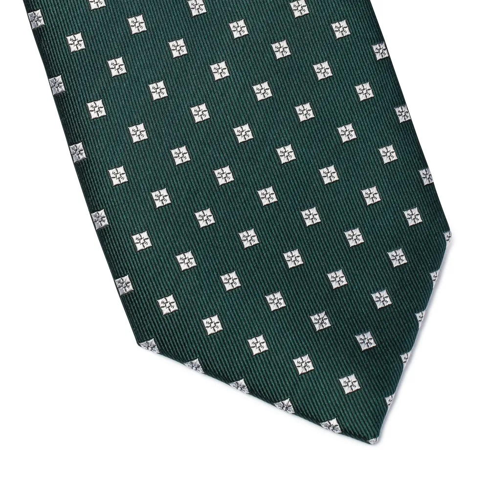 Krawat jedwabny VAN THORN zielony w biały wzór