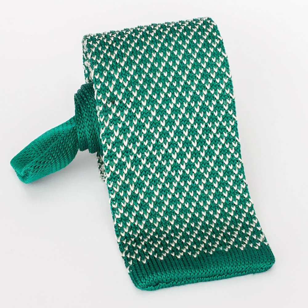 Krawat z dzianiny - knit zielony w drobny wzorek