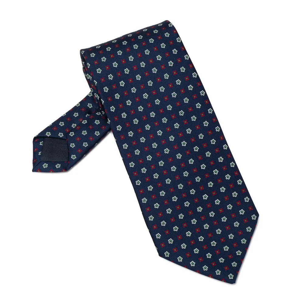 Elegancki granatowy krawat Bigi w białe i czerwone kwiaty