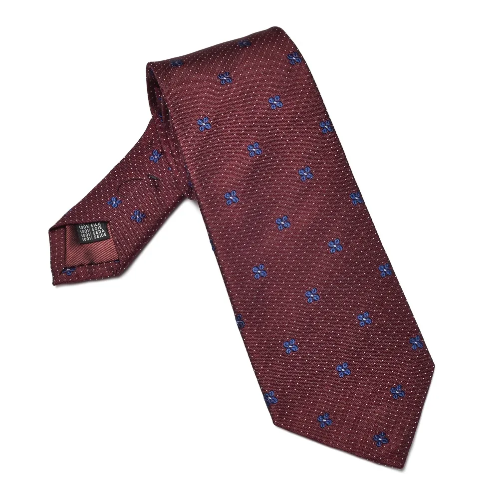 Bordowy krawat jedwabny w kropeczki i kwiatki