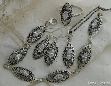 Niespotykany zestaw (kolczyki oraz wisior) srebrnej biżuterii. Stylistyka tego wyrobu to esencja uwielbienia symetrii kształtów. Całość doskonale uzupełniają turkusy. Biżuteria ta sprawi iż każda kobieta poczuje się piękniejsza i zauważona. Wymiar wisiora to 26x31mm Wymiar kolczyków to: 16,5 x 37mm (z biglem) To nasza propozycja na prezent z którego obdarowana osoba będzie na pewno zadowolona. Przekonaj się…