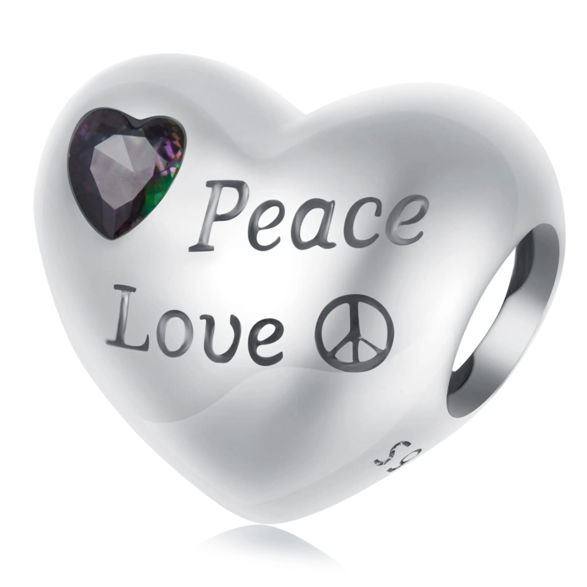 Serduszko z gołębiem i grawerem ,,Spokojna miłość" srebrny koralik charms srebro 925 beads