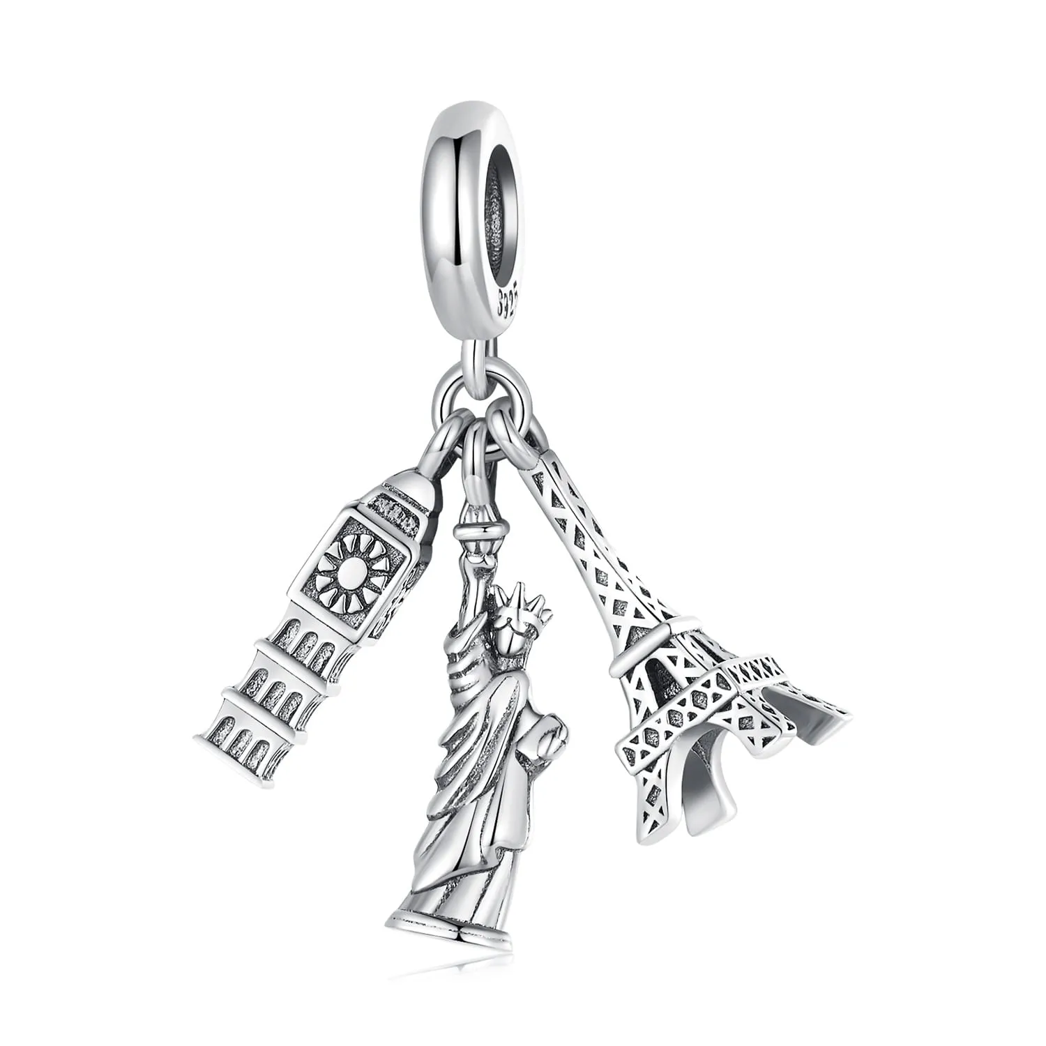 Big Ben Wieża Eiffla Statua Wolności srebrny charms zawieszka