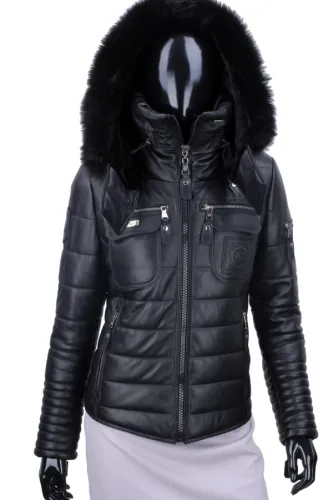 BSA450_1 - ciepła kurtka skórzana damska z futerkiem na kapturze DORJAN