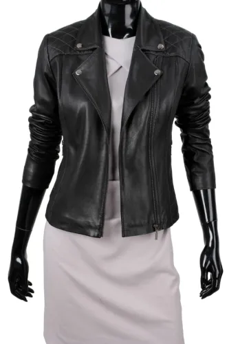 ANR450 - Ramoneska w rockowym stylu z czarnej skóry licowej DORJAN