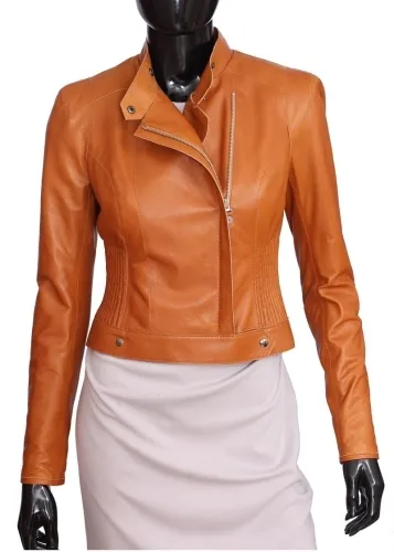 INS080 - camelowa ramoneska damska skórzana w stylu retro DORJAN