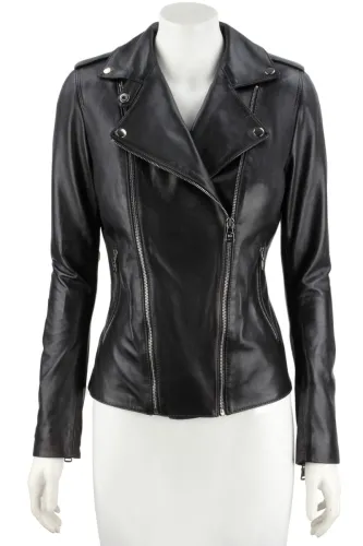 JUL450 - Damska ramoneska skórzana z pagonami na ramionach DORJAN