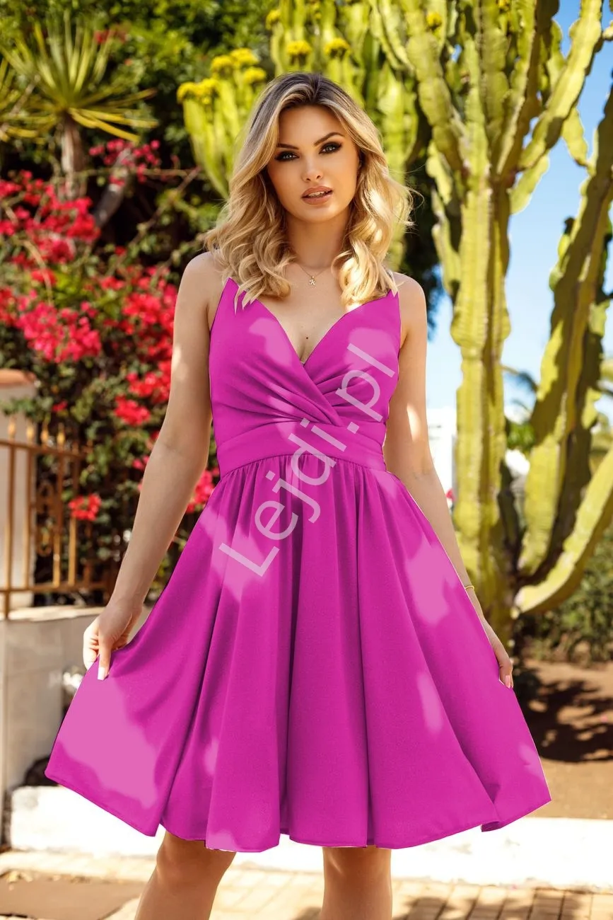 Brokatowa sukienka mini z rozkloszowaną spódnicą, LILY midi z krynoliną FUKSJA