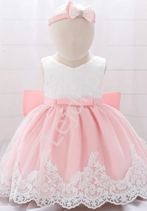 Jasno różowa sukienka wieczorowa dla dziewczynki. Modna sukienka dziecięca długa z koronką i sztucznymi perełkami. Tiulowa sukienka na wesele, na bal, dla małej druhny. Piękna sukienka dla nastolatki na wesele. Tanie sukienki wieczorowe dla dziewczynek.