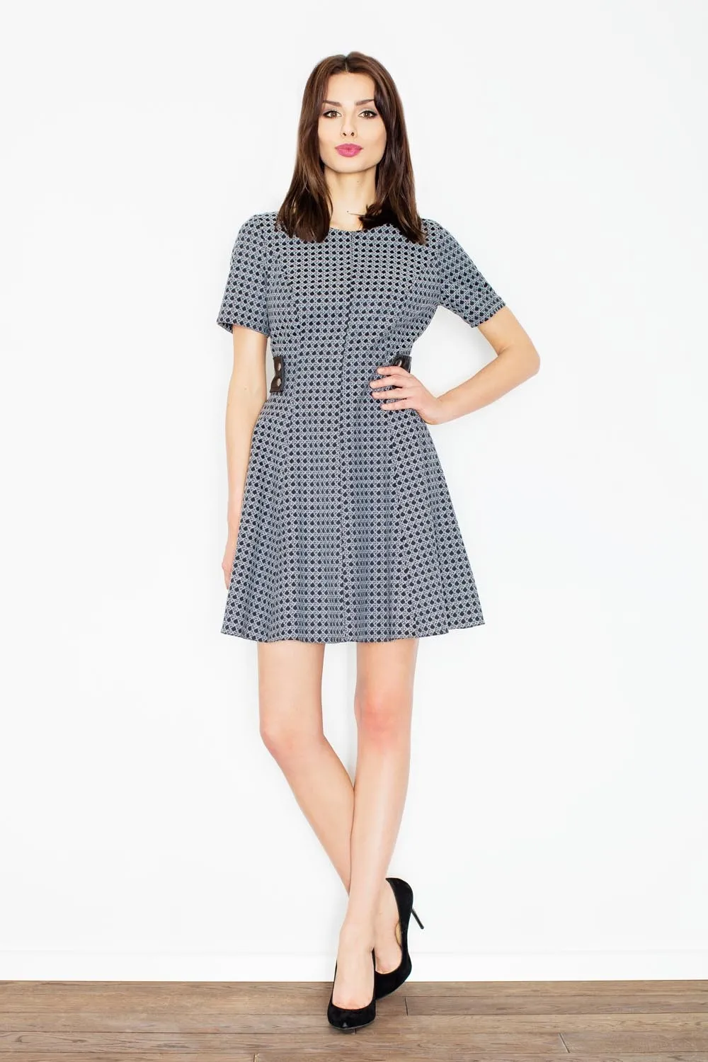 Szara Elegancka i Skromna Sukienka z Patkami z Eko-skóry