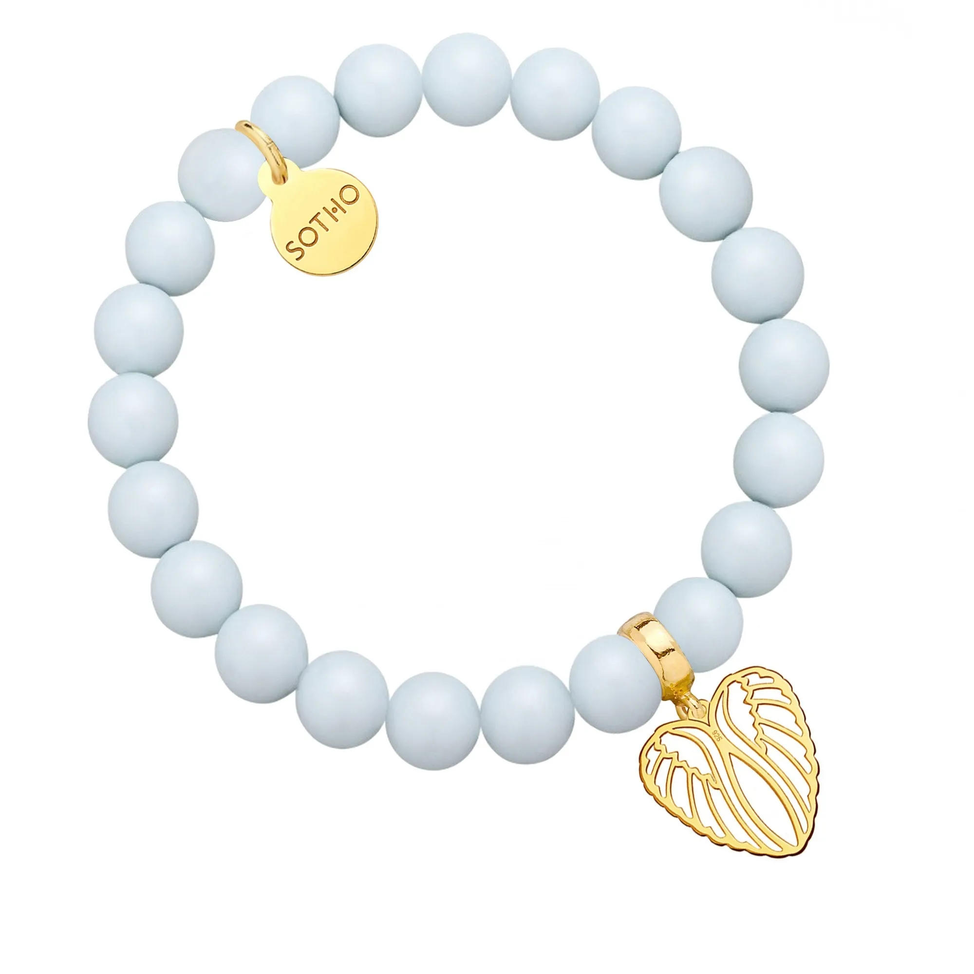 Jasnoniebieska bransoletka z pereł SWAROVSKI® CRYSTAL ze złotymi skrzydełkami w kształcie serca