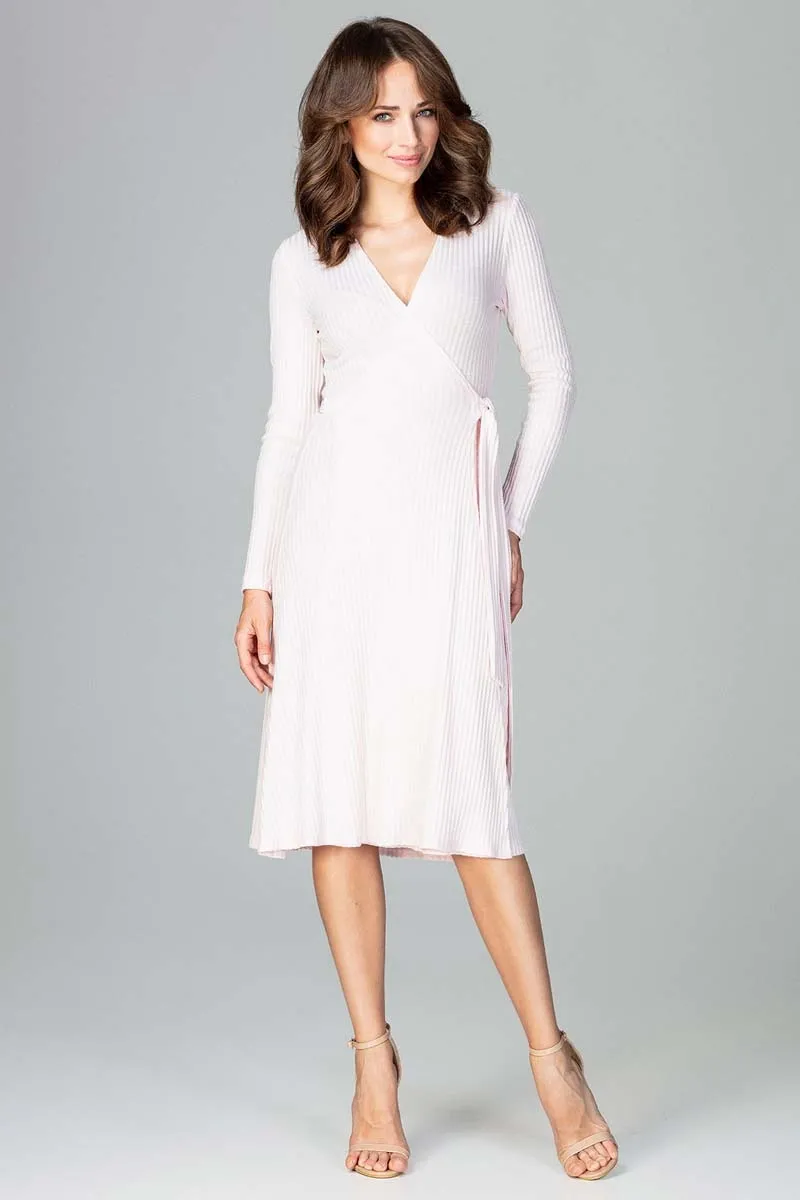 Różowa Sukienka Kopertowa Wiązana na Boku