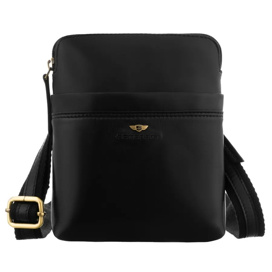Praktyczna listonoszka męska ze skóry naturalnej w czarnym kolorze z kieszeniami zewnętrznymi PTN 19004-TUM Peterson