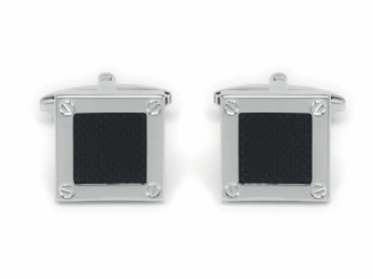 Eleganckie spinki do mankietów kwadratowe - śrubki i czarne wnętrze