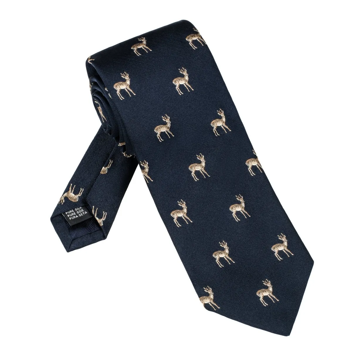 Elegancki granatowy krawat jedwabny Laco w sarenki