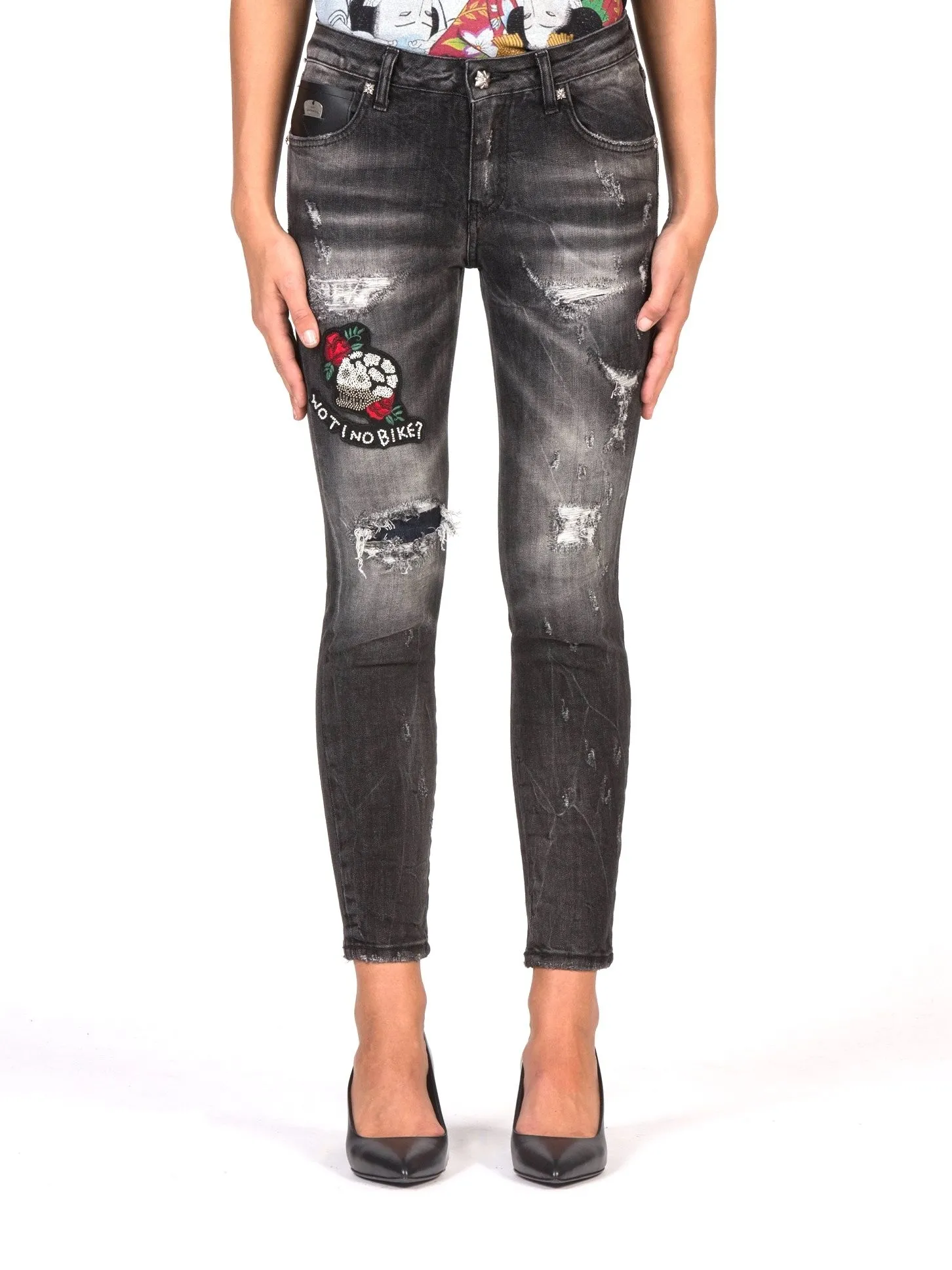Ultramodne, jeansowe spodnie marki John Richmond. Wykonane z najwyższej jakości włoskiej bawełny zapewniającej komfort podczas noszenia. Całości zdobiona licznymi przetarciami oraz dziurami. Z przodu umieszczono widoczne logo firmy. Posiadają trzy przednie oraz dwie tylne kieszenie. Zapinane na klasyczny zamek oraz sygnowany guzik. Materiał: 100% bawełna