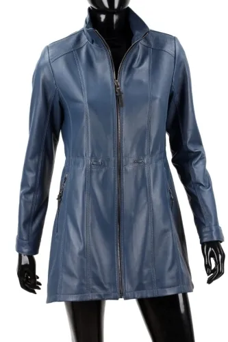 PARL073 - niebieska parka damska z naturalnej skóry owczej DORJAN