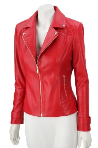 ANI412 - czerwona damska kurtka skórzana w typie ramoneski DORJAN