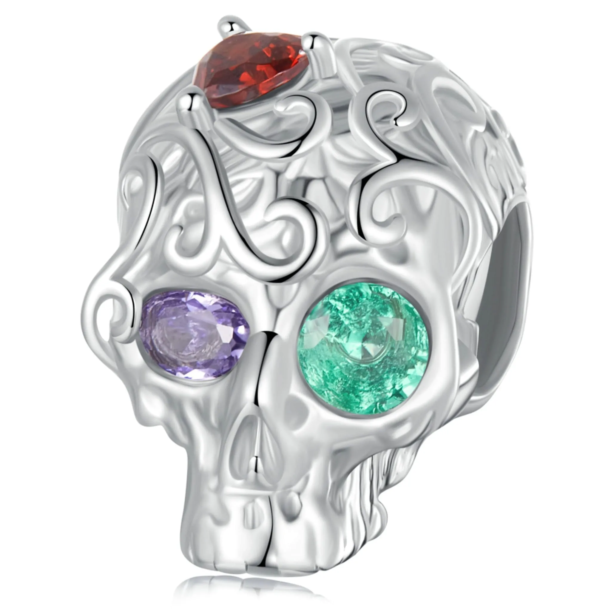 Czaszka z kolorowymi kryształami srebrny charms koralik srebro 925 beads