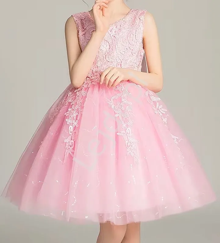 Różowa sukienka dla dziewczynki z koronką BX8991