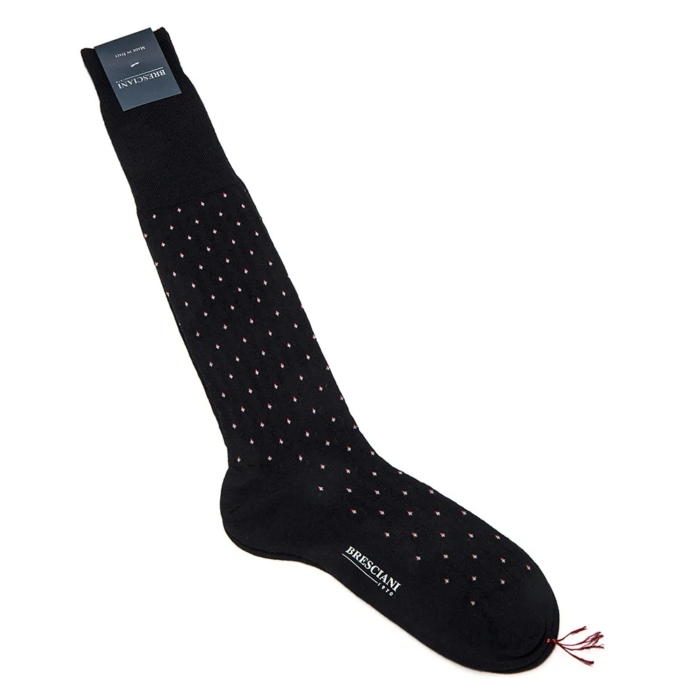Skarpety podkolanówki męskie Bresciani granatowe w kolorowe kropeczki S