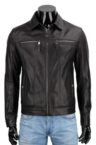 KCR450 - Męska katana skórzana z czarnej skóry naturalnej DORJAN