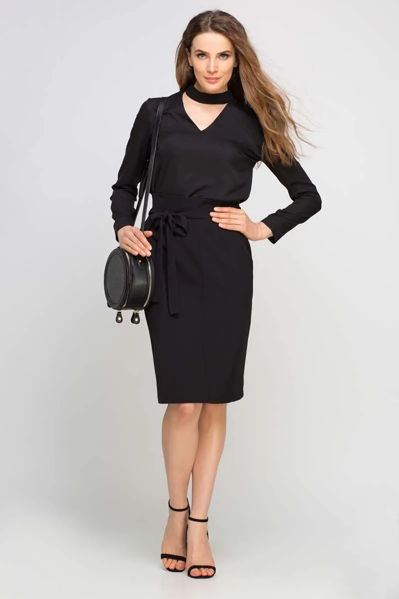 Khaki Spódnica Ołówkowa przed Kolano z Szarfą