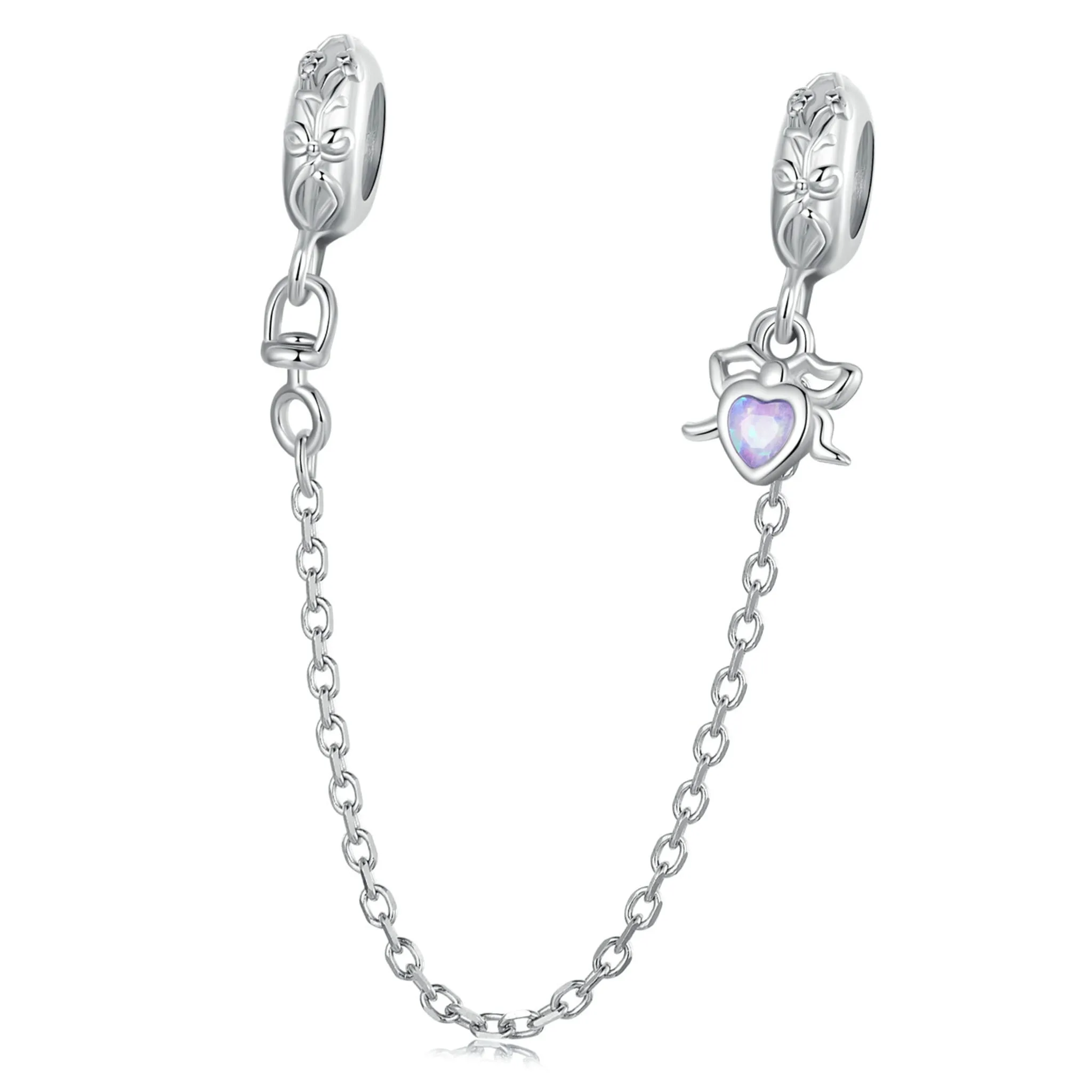 Łańcuszek zabezpieczający podwójny stoper z kokardką charms srebro 925