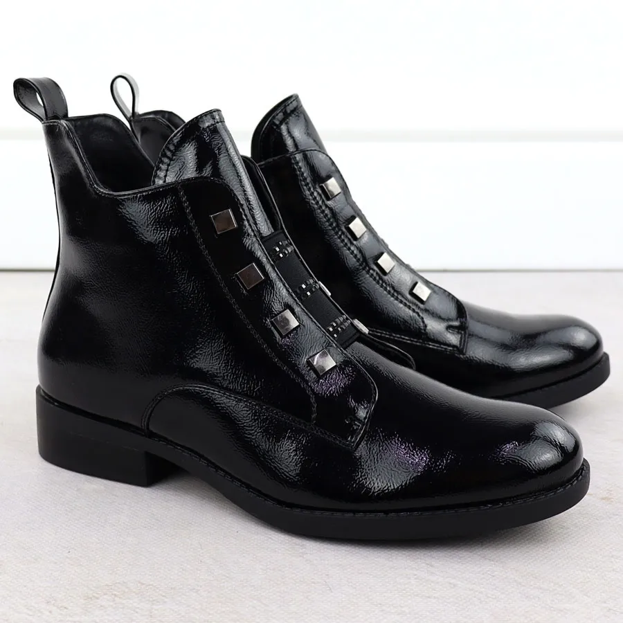 Botki damskie lakierowane czarne S.Barski HY52-527