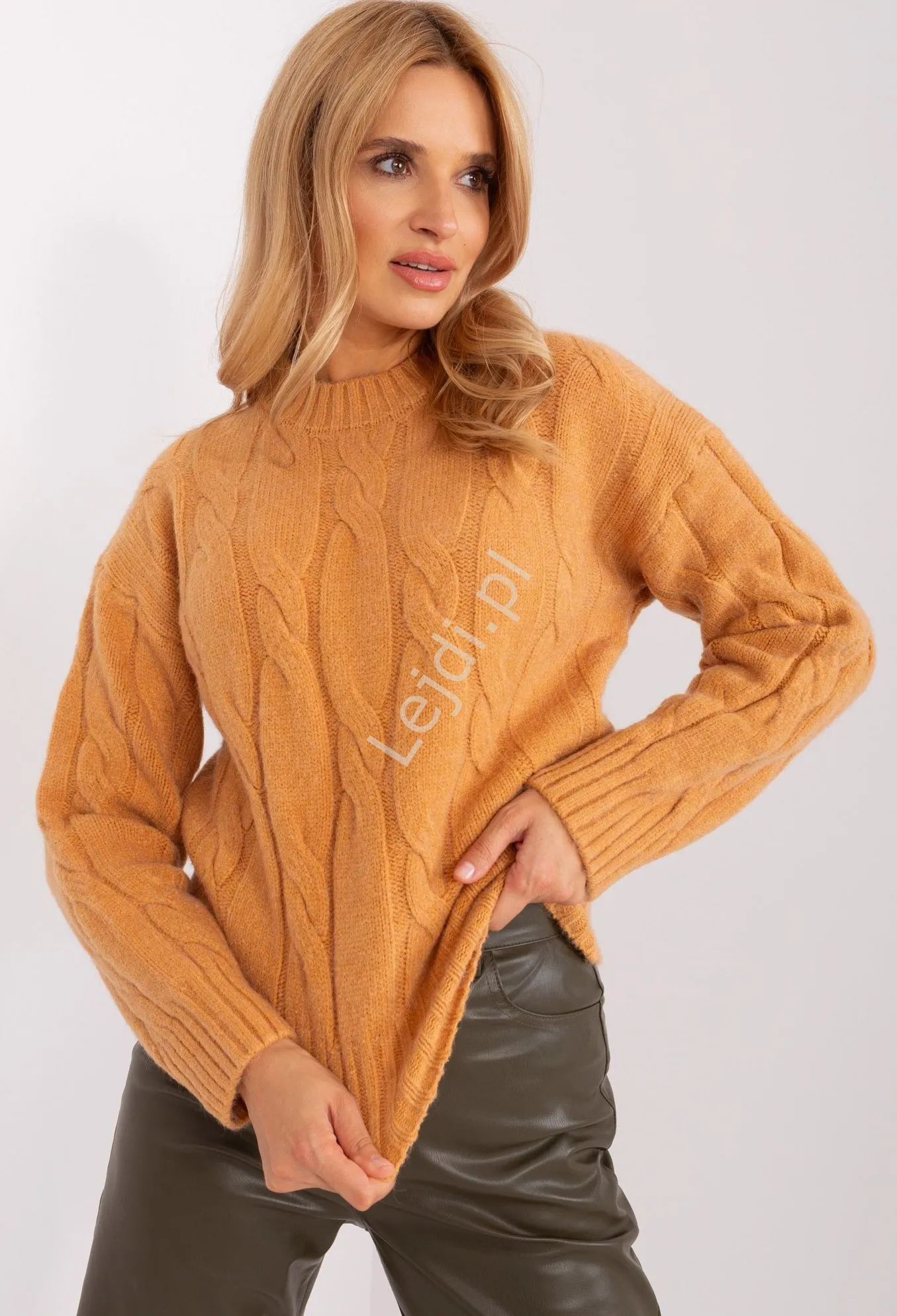 Klasyczny brzoskwiniowy sweter z warkoczami