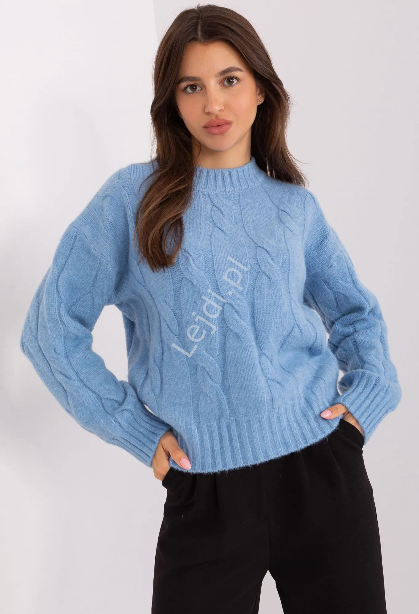 Ciemno bezowy sweter damski z warkoczami. Sweter damski idealny dla każdej dziewczyny na jesień i zimę o grubym pieknym splocie. Dekolt klasyczny, wykończony ściągaczami. Dostępny w wielu kolorach.