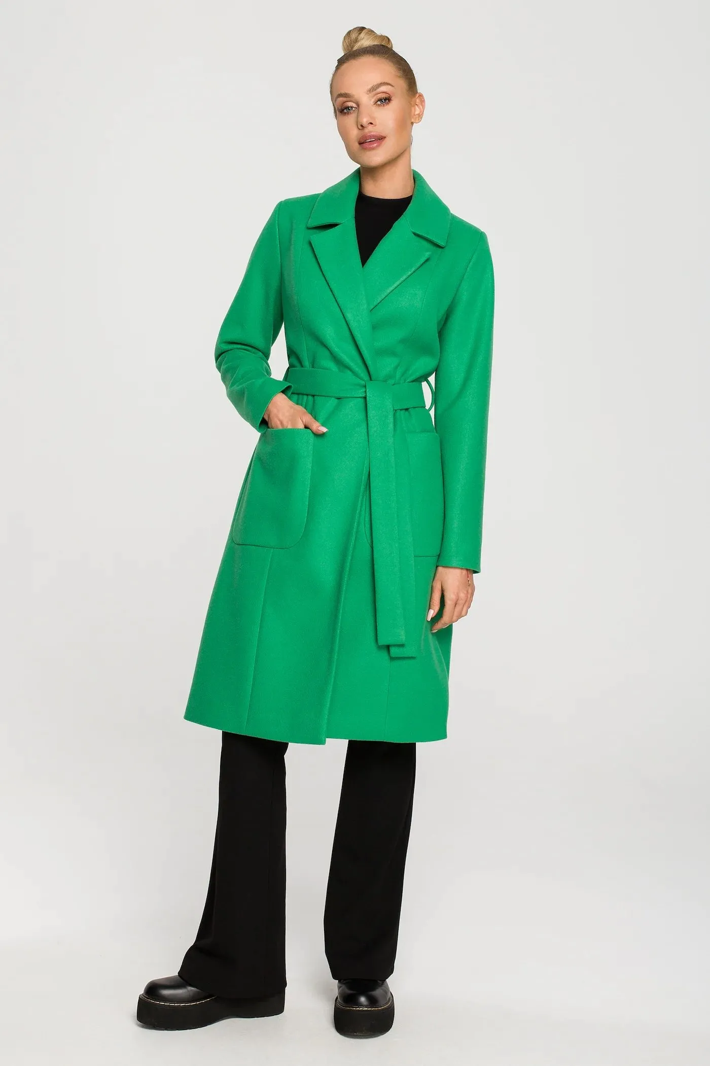 404,00 złKlasyczny płaszcz przewiązany paskiem – zielony – Rozmiar: M