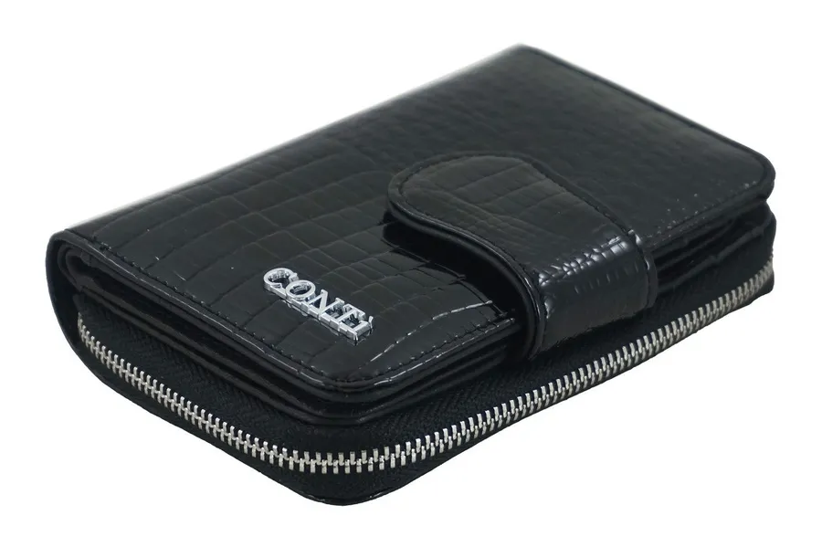 Klasyczny skórzany portfel damski CROCO - Czarny