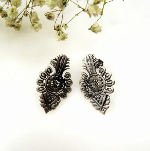Kolczyki srebrne oksydowane - Parzenice góralskie na sztyftach II