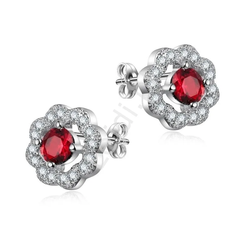 Kolczyki kwiatki z czerwoną cyrkonią